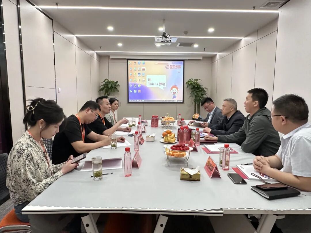 由安徽广电企服科技有限公司总经理韦祚贤和梦动传媒董事长付晓文等公司领导陪同接待并展开座谈。